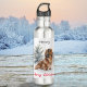 Genießen Sie den Winterzauber mit dieser köstlichen Wasserflasche zum Thema Dackel. Die wiederverwendbare Flasche zeigt eine Aquarellmalerei einer bezaubernden langhaarigen Dackel in einem Winterwunderland aus Schnee und immergrünen Bäumen. Der Gruß "Frohe Weihnachten" erscheint unterhalb des Wursthundebildes, in eleganter Schrift Typografie in fröhlich leuchtendem Rot. Personalisieren Sie mit einem Namen an der Spitze für eine individuelle Touch. Die Edelstahl-Wasserflasche ist voll gefeiert und eignet sich hervorragend für Reisen und ist ein niedliches Weihnachtsgeschenk für Hundefreunde.