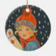 Frohe Weihnachten - Mädchen, alte schwedische Vint Keramik Ornament