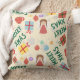 Fröhlicher Weihnachtstext mädchenhaft rosa Hintergrund mit prächtigen und farbenfrohen Ornamenten werfen Kissen. Mädchenweihe Wohngestaltung für Kinder.