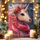 Versenden Sie eine magische Touch in dieser Urlaubssaison mit dieser bezaubernden Karte mit einem schönen Einhorn, das mit rosa Blume und einem festlichen Schal dekoriert ist. Die "Fröhliche Weihnachten"-Nachricht verleiht einen skurrilen Charme, ideal, um Freunden und Familienmitgliedern, die Fantasie und Wunder Liebe haben, fröhliche Grüße zu schicken.