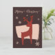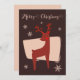 Frohe Weihnachtskarte mit einem niedlichen Hirsch auf einem Hintergrund mit Schneeflocken und einer stilisierten Form in warmen Erdtönen im Trend zu Weihnachten. Personalisieren Sie Ihre persönlichen Daten und senden Sie sie an Ihre Lieben.