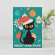 Frohe Weihnachten Mitte des Jahrhunderts Moderne Katze in Weihnachtsmannmütze