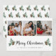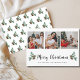 Senden Sie Ihre Urlaubssegmente mit dieser eleganten Weihnachtsfotokarte. Design zeigt die Worte Frohe Weihnachten in einem stilvollen Schriftart, Kiefernnadeln mit Kegel, und eine 3-Foto-Collage. Fügen Sie Ihre Lieblings-Fotos, Ihre persönliche Nachricht und Ihren Familiennamen hinzu. Auf der Kartenrückseite ist ein passendes Muster für eine besondere Feiertagsfeier-Touch zu sehen. Foto und Text lassen sich leicht anpassen. Gute Ferien!