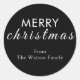 Elegantes und modernes Drehbuch "Frohe Weihnachten" Familienname Classic Round Sticker - Black.