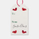 Ein Geschenk-Tag mit Frohen Weihnachten auf der Vorderseite mit einem modernen minimalistischen Weihnachtsbaum-Design mit einem kleinen roten Vogel auf den Ästen. Auf der Rückseite sind mehr rote Vögel und die zu & von, die Sie mit Ihrem Namen personalisieren können oder Sie können den Weihnachtsmann, der gerade ausgefüllt wird verlassen.
