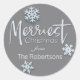 Fügen Sie Ihren Urlaubsmailings, Gastgeschenke, Geschenken und mehr zeitgemäßen Stil hinzu mit diesem personalisierten Aufkleber, der Ihnen alles "Frohe Weihnachten" wünscht. Die Farben sind grau, mit schimmerndem blauen Text und Schneeflocken. Ersetzen Sie den Beispielnamen, der mit Ihrem Namen oder einem anderen gewünschten Text angezeigt wird.