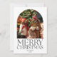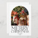 Einfaches und elegantes Weihnachtskartendesign mit minimalistischem Stil und moderner schicker Typografie Frohe Weihnachten. Fügen Sie Ihr eigenes individuelles Foto in einen Bogen-Rahmen, um Ihre eigene personalisierte Urlaubskarte für Familie und Freunde zu erstellen.