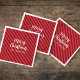 Dieses Weihnachtsgeschenk bietet fröhliche Weihnachtsfeier Rot, gestreiftes Tischcocktail-Dekor, modernes, minimalistisch rotes Drehbuch, fröhliche Weihnachtskalligraphie Typografie, Abendessen mit Geschirr, Cocktail zum Abendessen, festliche kalkrote und weiße Weihnachtsfeiertage, saisonale Weihnachtsfeiertage, Weihnachtsfeiertagszeitung, Weihnachts-Party-Serviette