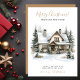 Diese rustikale Aquarell Frohe Weihnachten neue Zuhause für den Urlaub Ankündigungskarte mit einem festlich dekorierten Haus mit Schnee, Kiefern, Kranz, roten Bögen und Bäumen wäre perfekt, um Ihren Freunden und Familie zu senden, jetzt, da Sie auf eine neue Zuhause umgezogen sind. Das Gefühl ist anpassbar. Erhalten Sie genug, damit jeder, den Sie kennen und die Liebe Ihre neue Adresse hat. Sie werden so aufgeregt sein über deinen großen Zug!