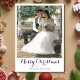 "Frohe Weihnachten" in tiefer Mitternacht lila gibt diesem Design eine reguläre Touch. Zeigen Sie Ihr Foto und Ihren Nachnamen auf der Vorderseite und fügen Sie eine liebevolle Nachricht und ein zweites Bild auf dem weißen Rücken. Eine reiche, kreative Art, Ihre ersten Urlaubswünsche als verheiratetes Paar zu versenden.