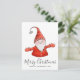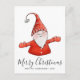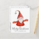 Erstellen Sie niedliche Weihnachtspostkarten mit fröhlichen Weihnachtsgrüßen und fröhlichem Gnome in festlich roten Kleider auf weißem Hintergrund. Der Vorlagentext erleichtert die Personalisierung mit Ihrem Familiennamen, Ihrer Adresse und einer Nachricht. Die Rückseite ist mit subtilen Schneeflocken dekoriert. Gute Ferien!