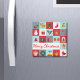 Frohe Weihnachten Niedlich Retro Winter Weihnachtsmagnete bietet den Text "Frohe Weihnachten" in modernen roten Schriftzeichen mit Weihnachtsbildern wie Rentier, Baum, Strumpf, Glocke, Schneemann, Geschenk, Kranz, Heilige, Stern, Bonbons, Lebkuchen, Engel und mehr. Von Evco Holidays entworfen www.zazzzle.com/store/evcoholidays