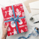 Weihnachten, niedlicher Schneemann, rot und weiß, Name, Musterverpackungspapier. Feierliche Weihnachtsverpackung, personalisieren Sie sie mit dem Namen Ihres Kindes.