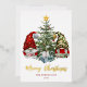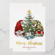Zwei niedliche Gnome, die Weihnachtsgeschenke halten, stehen auf beiden Seiten des geschmückten Weihnachtsbaumes mit weiteren Geschenken darunter. Das moderne Drehbuch "Frohe Weihnachten" kann auf Ihren eigenen einzigartigen Urlaubssegment geändert werden und ist in echter Goldfolie gedruckt. Goldfolie betont auch die Lichterketten und den Stern auf dem Baum. Fügen Sie Ihre Namen und spezielle Nachricht auf der Rückseite für eine eine freundliche Weihnachtskarte in dieser Saison! Wenn Sie mehr passende Produkte oder andere Farbtöne benötigen, kontaktieren Sie mich bitte über Zazzle Chat.