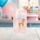 Fröhliche Weihnachten Niedliche Hirschschschneeflocken Holidays Can Glasses zeigt eine Winterlandschaft eines niedlichen Hirsches, der durch Schneeflocken geht, mit dem populären Text "Frohe Weihnachten", geschrieben in beliebter blauer Typografie. Erstellt von Evco Holidays www.zazzle.com/store/evcoholidays
