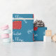 Frohe Weihnachts-personalisierte Verpackungspapier mit niedlichem Geschenk und individuelle Name auf und aquamarinem Hintergrund