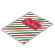 Fröhliche Weihnachtsanschauung mit Text- und Schneeflocken-Design auf rot, weiß und grün gestreiften Hintergrund