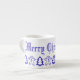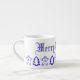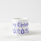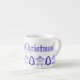 Frohe Weihnachten oder Ihr Name oder Text Niedlich Gingerbread Mann und Weihnachtsbaum Muster Blau und Weiß Espresso Tasse Einzigartiges Personalisiertes Weihnachtsgeschenk für Kaffeeliebhaber.