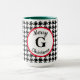 Ein klassisches Schwarz-Weiß-Hahnentrittmuster, mit gerahmtem Rot Frohe Weihnachten und Single Initial und, Option zum Bearbeiten und Hinzufügen von Namen. Diese Tasse ist eine große, 15oz. Combo Farbgetränke, auch in 11oz. Wählen Sie aus 5 Farben für den Griff und innen. Ändern Sie einfach den gesamten Text mit der bereitgestellten Vorlage. Ein perfektes Urlaubsgeschenk für Familie oder Freund. Weitere Informationen finden Sie unter "Über dieses Produkt" an der Seite.