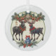 Dieses runde Weihnachtsbaumschmuck ist ein schönes Urlaubsstil. Es ist absolut kugelförmig und hat eine glänzende Oberfläche, die die bunten Weihnachtslichter widerspiegelt. Der Schmuck ist mit einem Bild zweier Weihnachtsrinder geschmückt, elegant in der Mitte dargestellt. Sie sind sehr detailliert und zeigen ihre majestätischen Geweihe und ihre zarten Eigenschaften. Rund um die Rentiere gibt es verzierte Weihnachtsbaumzweige, die dem Design eine Touch Grün verleihen. Die Äste sind mit winzigen, funkelnden Bausteinen und einem weißen Staub geschmückt, der dem Aussehen des frischen Schneefalls nachempfunden ist. Die Kombination aus Rentieren und dekorierten Zweigen schafft eine festliche Szene, die den Geist der Ferienzeit verkörpert. Dieses Ornament ist nicht nur eine Dekoration, sondern ein Kunstwerk, das jedem Weihnachtsbaum eine Touch der Magie und des Staunens verleiht.