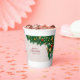 Weihnachts- und Neujahrsdesign mit Tannenzweigen, goldenen Sternen, Schneeflocken und Weihnachtsbällen in Rot, Gold und Silber, auf einem hellen Hintergrund mit dem Text "Frohe Weihnachten und Glück im neuen Jahr" in Rot. Digitale Kunst.
