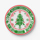 Modernes Weihnachtsdesign im Bauhaus-Stil mit einem gewagten geometrischen Baum in festlichem Rot und Grün.