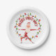 Fun und festliche Merry Vibes nur Papier Teller, mit einer Illustration von Santa machen eine Yoga Pause umgeben von Weihnachtsbeleuchtung.