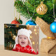 Eleganter froher Weihnachts-Foto-Block mit schöner kursiver Schrift in Weiß. Dieses moderne Baby-Fotogeschenk mit prächtiger Typografie und eigenem Text über dem kompletten Blutbild in weiß oben. Ideal, um ein lächelndes Baby oder glückliches Kind zu feiern.