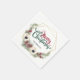 Personalisieren Sie Ihr Weihnachtsessen oder Weihnachts-Party mit diesen individuellen Servietten. Sie verfügen über eine Aquarellblütenanordnung mit Kiefernzapfen, Kiefernnadeln, Heiligenbeeren und einer weißen Blume, einem goldenen Rahmen und den Worten Frohe Weihnachten.
