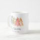 Einfache und elegante Tasse mit einer Wasserfarbe abstrakt von Kiefern in bestickter Weise grün, rot, goldfarben und orange und "Frohe Weihnachten" in einem stilvollen Drehbuch. Fügen Sie Ihren Namen in der modernen Typografie hinzu oder verließ leer.
