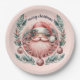 Frohe Weihnachten Pink Santa Wreath Pappteller