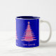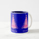 Dieses elegante, einzigartige, moderne, stilvolle, handgezeichnete Design besticht durch einen Weihnachtsbaum mit faszinierenden Details in rosa Farben auf dunkelblauem Hintergrund mit Schneeflocken. Das Design zeichnet sich durch eine stilvolle Topografie aus. Diese Tasse eignet sich hervorragend für Feste und eignet sich hervorragend als Geschenk für Ihre Freunde und Familie.