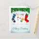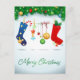 Frohe Weihnachten mit Weihnachtssocken und Tannen, digitale Kunst