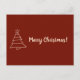 Diese Postkarte präsentiert ein klassisches und elegantes Design, um Ihre festlichen Grüße in dieser Ferienzeit zu senden. Die Vorderseite zeigt einen minimalistischen Weihnachtsbaum, der in einem zarten Weiß umrissen ist, das in einem subtilen Kontrast zum reichen, tiefen roten Hintergrund steht und die traditionellen Farben des Urlaubs einfängt. Auf dem Baum sitzt ein heller Stern, der bis zur Basis des Baumes führt und ein einfaches, aber gleichzeitig ergreifendes Symbol für Weihnachtsjubeln schafft. Der Gruß "Frohe Weihnachten!" wird in einem fließenden, anmutigen Drehbuch hervorgehoben, das das lineare Design des Baumes ergänzt. Diese zeitlose Botschaft vermittelt Freunden, Familie oder Kollegen den Geist der Saison. Jeder Aspekt dieser Postkarte, von den vorderen visuellen Elementen bis hin zur Kernbotschaft auf der Rückseite, ist vollständig anpassbar. Dadurch kann eine persönliche Touch wie eine personalisierte Nachricht hinzugefügt werden, was die Karte zu einer einzigartigen und besonderen Korrespondenz macht, die die Empfänger sicher schätzen werden. Egal ob Sie einen traditionellen Gruß schicken möchten oder etwas personalisierteres, diese Postkarte bietet eine perfekte Leinwand, um Ihre Urlaubswünsche zu erfüllen.