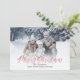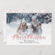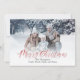 ein einfaches, fröhliches Weihnachtsskript mit einem gefiederten weißen Rand. Ein einfaches, elegantes Kalligrafieschrift. Dieses klassische Design zeichnet sich durch ein volles Bleed aus und hält 1 Foto. Die Rückseite dieser Karte hat einen weißen Hintergrund mit gesprenkelten festlichen roten Konfetti.