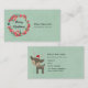 Visitenkartenvorlage mit einem hübschen Weihnachtskranz in Aquarellen. Rote Blume und grüne Blätter in kreisrunder Form mit frohen Weihnachten in einem modernen, handgeschriebenen Schriftart geschrieben. Auf der Rückseite eine niedliche Waldlandschafsmaschine mit roter Weihnachtsmannmütze - Hipster-Stil. Personalisieren Sie Ihre Geschäftsdaten.