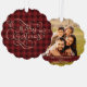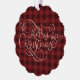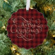Frohe Weihnachten Red Gingham Script Foto Ornament Karte