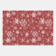 Frohe Weihnachts Red Gray Winter Wrapping Papier Blätter. Aquamarine, blaue und weiße Schattierungen mit einem Christlichen religiösen Thema. Schneeflocken, Sterne und Streifen, eine Vielfalt auf jedem Geschenkpapier im Set von 3.