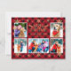 Personalisieren Sie Ihre eigene Weihnachts-Fünf-Fotos-Urlaubskarte mit einem karierten Hintergrund, goldglatter Schneeflocken, Baum-Blätter und Goldtypografie.