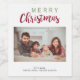 "Frohe Weihnachten" festliche rot-grüne Weinmarke mit personalisiertem Foto.