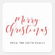 Frohe Weihnachten rot-weiß elegante Kalligraphie Quadratischer Aufkleber