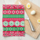 Frohe Weihnachten Rote und grüne Schneeflocken Geschirrtuch