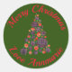 Frohe Weihnachten Roter Grüner Abstrakter Baum Runder Aufkleber