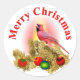 Sage frohe Weihnachten mit diesem schönen Kardinal sitzend auf einigen goldenen Zweigen und einige bunte Ornamente vor einer Flamme.