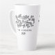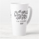 Frohe Weihnachten Rustikale Ribbon Familie Name Latte Tasse. Schwarz-Weiß-Design mit Fröhlicher Weihnachtsschrift auf einem rustikalen Band mit Blattwerk. Großartig als Weihnachtsgeschenk für die Familie. Geben Sie Ihren Familiennamen und das Jahr ein.