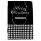 Mit diesem rustikalen Büffel karierte Weihnachtsgeschenktasche aus Karierter Perfektion verwöhnen Sie Ihre Urlaubsgeschenke stilvoll. Die karierte, schwarz-weiße Unterlage, der schwarze Hintergrund und das festliche "Frohe Weihnachten" sorgen für eine besondere Touch. Die Tasche bietet auch Platz für eine persönliche Note. Diese wiederverwendbare Tasche eignet sich hervorragend für die Verpackung von Weihnachtsgeschenken für Familien, Freunde oder Kollegen und bringt jeden Feiertag gemütlichen Charme. Bearbeiten Sie den Text von der Produktseite oder ändern Sie den Stil oder die Farbe des Schriftartes mithilfe des Entwurfstools.