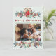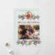 Rustikale moderne Aquarell Winter florale botanische Frohe Weihnachtskarte mit Kiefern, Beeren, Grünpflanzen auf einem schlauen grünen Hintergrund. ++++++++++++ Persönlich gestalten mit Ihren Wünschen, Texten, Unterschriften und 5 Familienaufnahmen (ein Foto auf der Vorderseite und 4 auf der Rückseite).