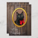 Funny und eleganter Goldrahmen für Ihr Foto mit rustikalem Holzhintergrund und elegantem Drehbuch Frohe Weihnachtsstexte. Personalisierter Text.