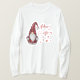 Rustikales Shirt im Landhausstil mit "Frohe Weihnachten" und dem Jahr in stilvoller roter Kalligraphie-Schrift. Dieses einzigartige Design besticht durch ein Gnome in einem karierten, roten Büffel-Outfit mit Hut und Snowflake-Sternen.