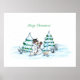 Frohe Weihnachten! Schneemann mit Katze und Welpe Poster